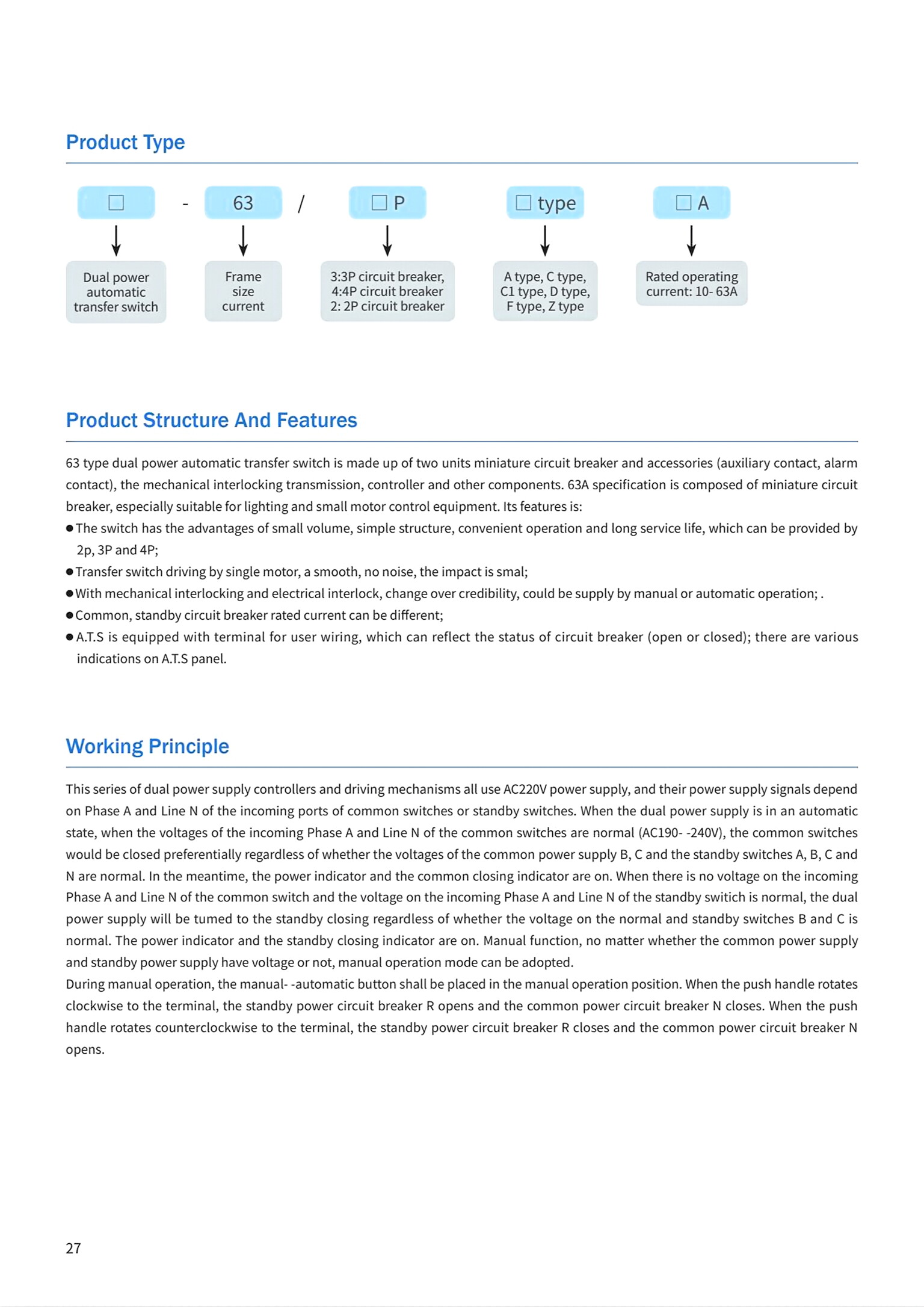 Automatic Transfer Switch HATS-63/2P,HATS-63/3P,HATS-63/4P