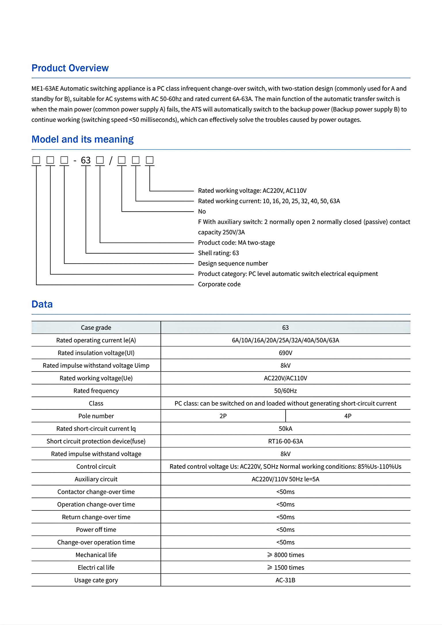 Automatic Transfer Switch ME1-63AE/4P