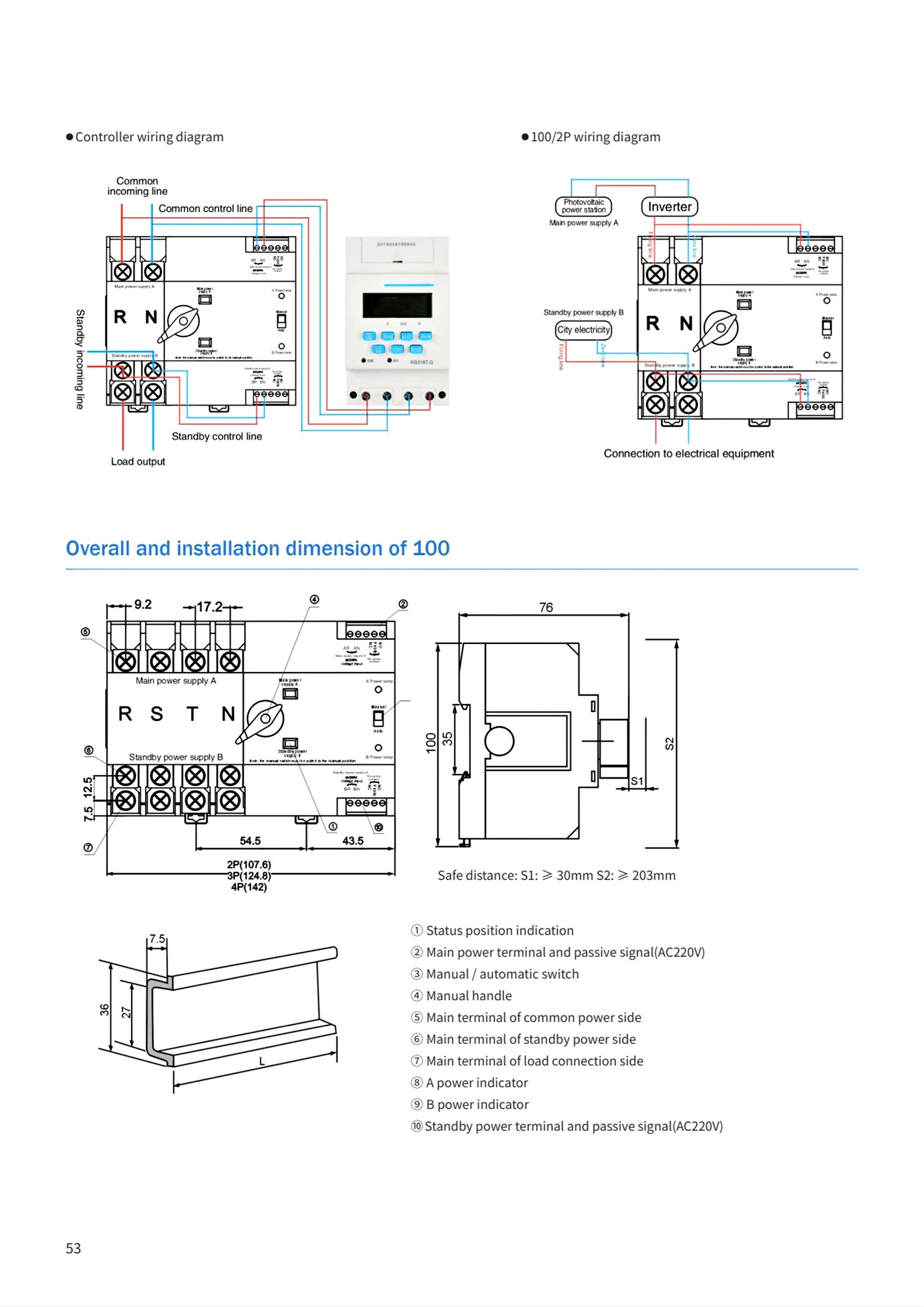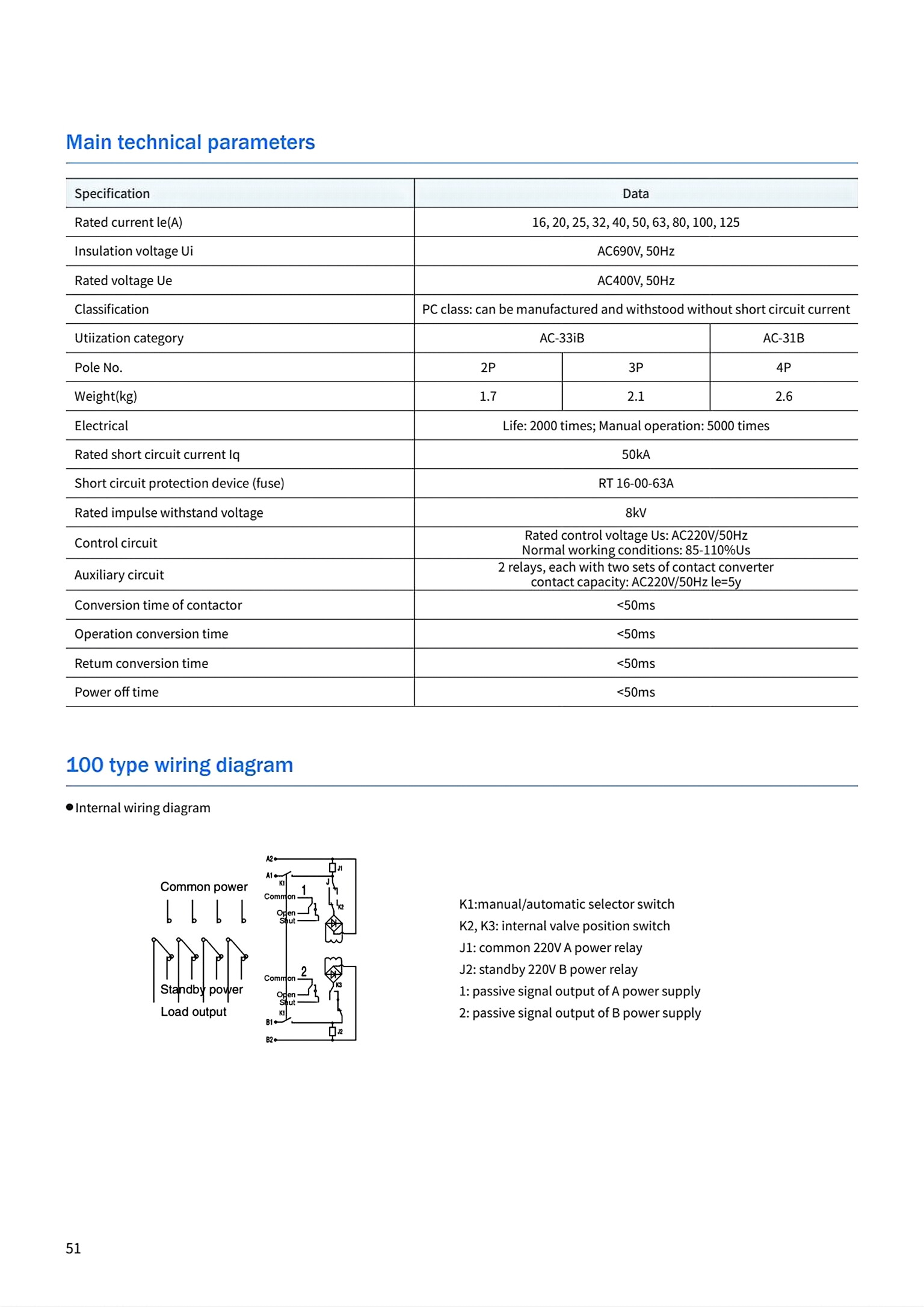 Rated working current: 100 A